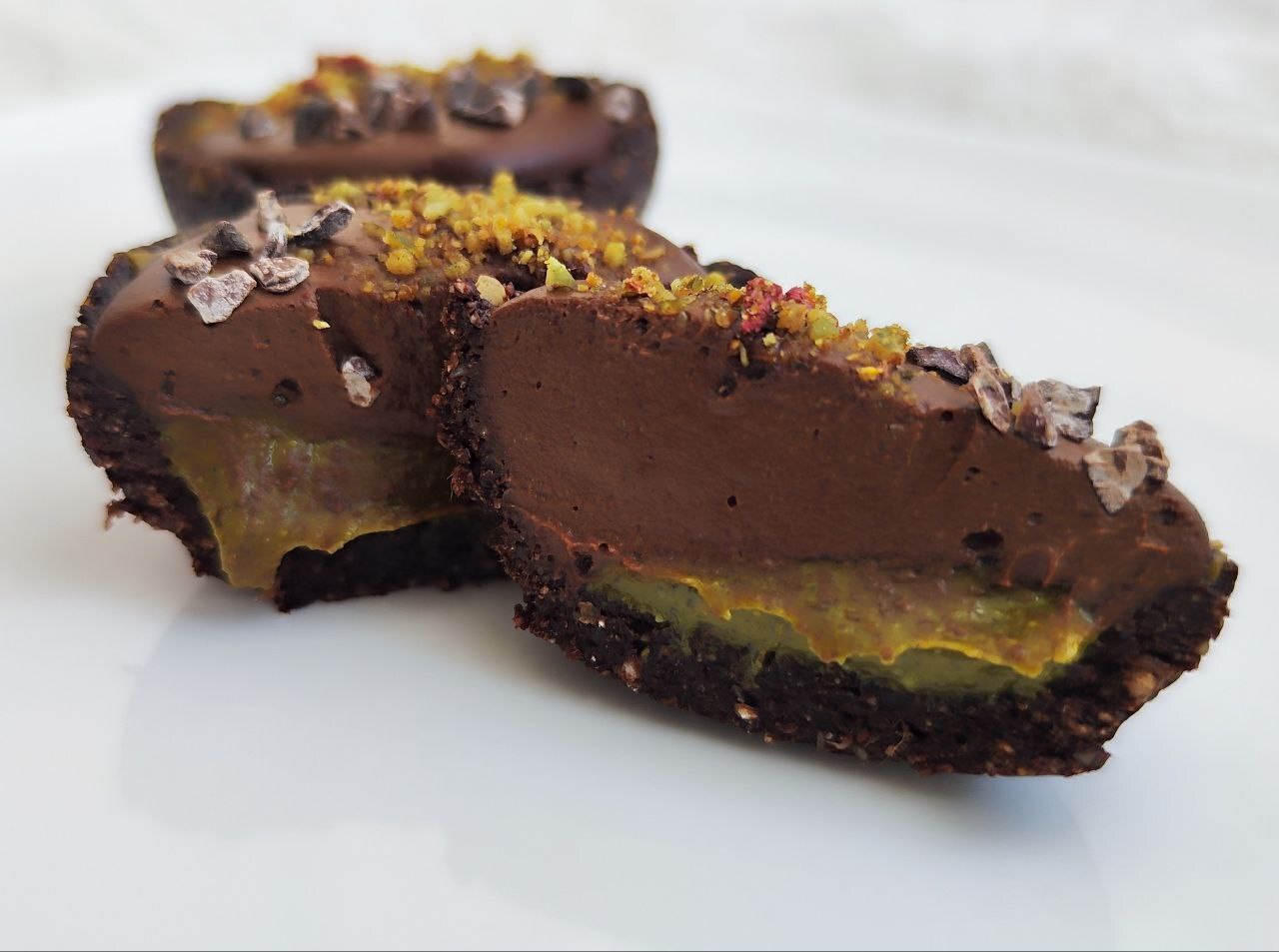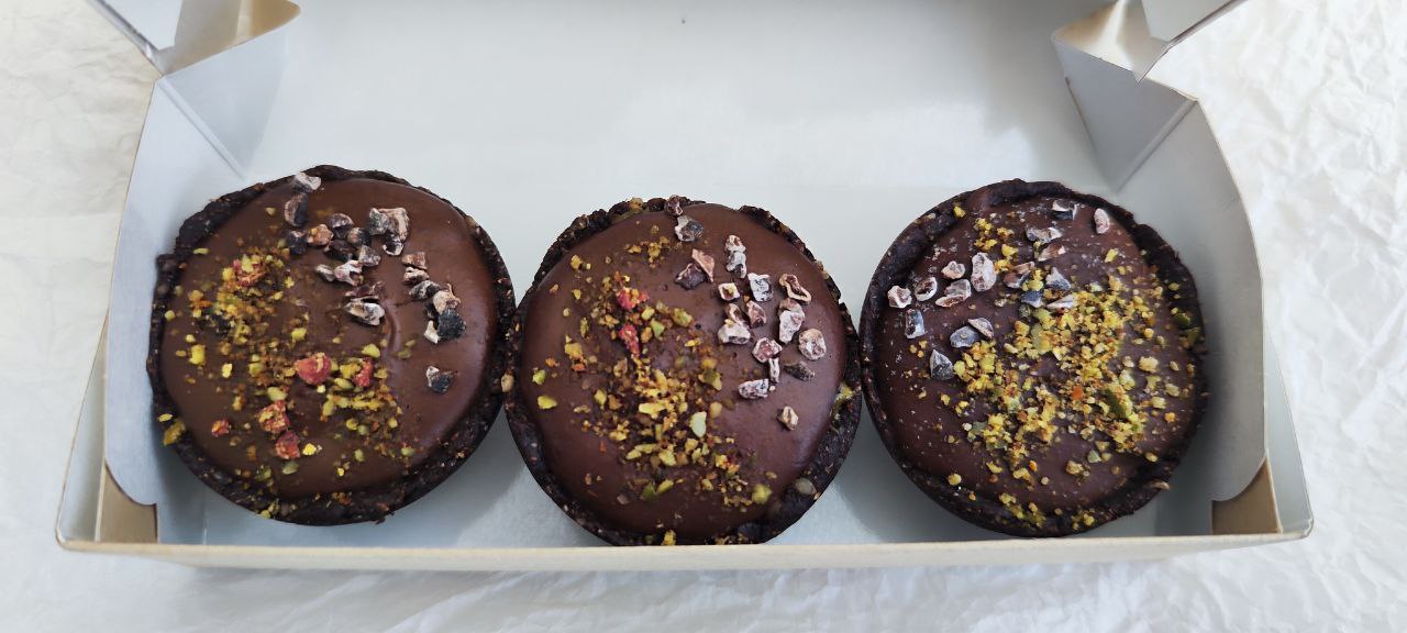 Состав: гречка зелёная пророщенная, карамелизированная с медом, грецкий орех, финики, сироп топинамбура, масло кокосовое, какао-порошок, корица цейлонская, соль розовая, какао тёртое, финики, молоко кокосовое, паста фисташковая, крошка из семян тыквы, корица, земляника сушеная, крупка из какао-бобов.