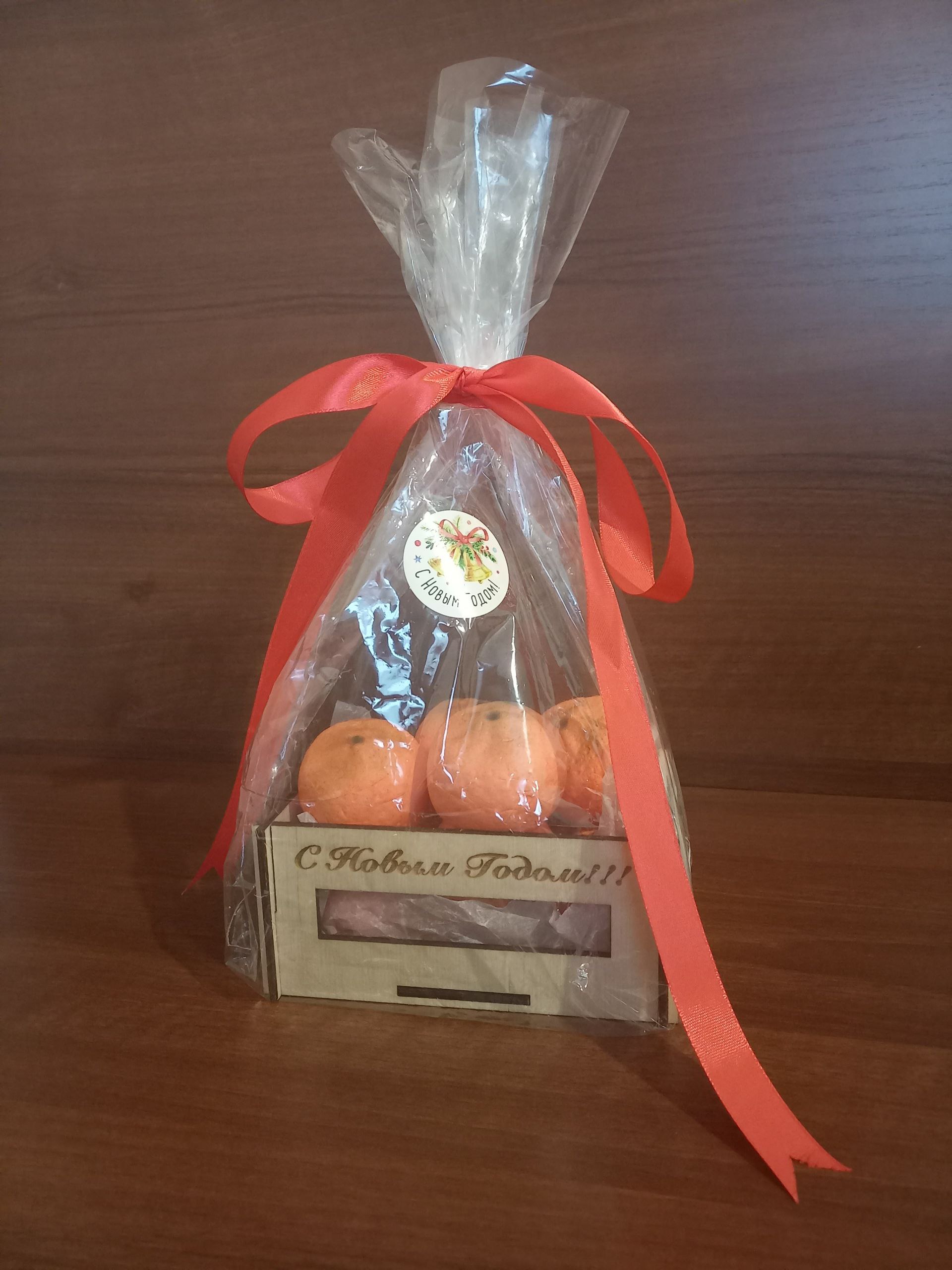 Упакованы в деревянный ящик и полиэтиленовый пакет, завязан лентой, наклейка С Новым Годом
